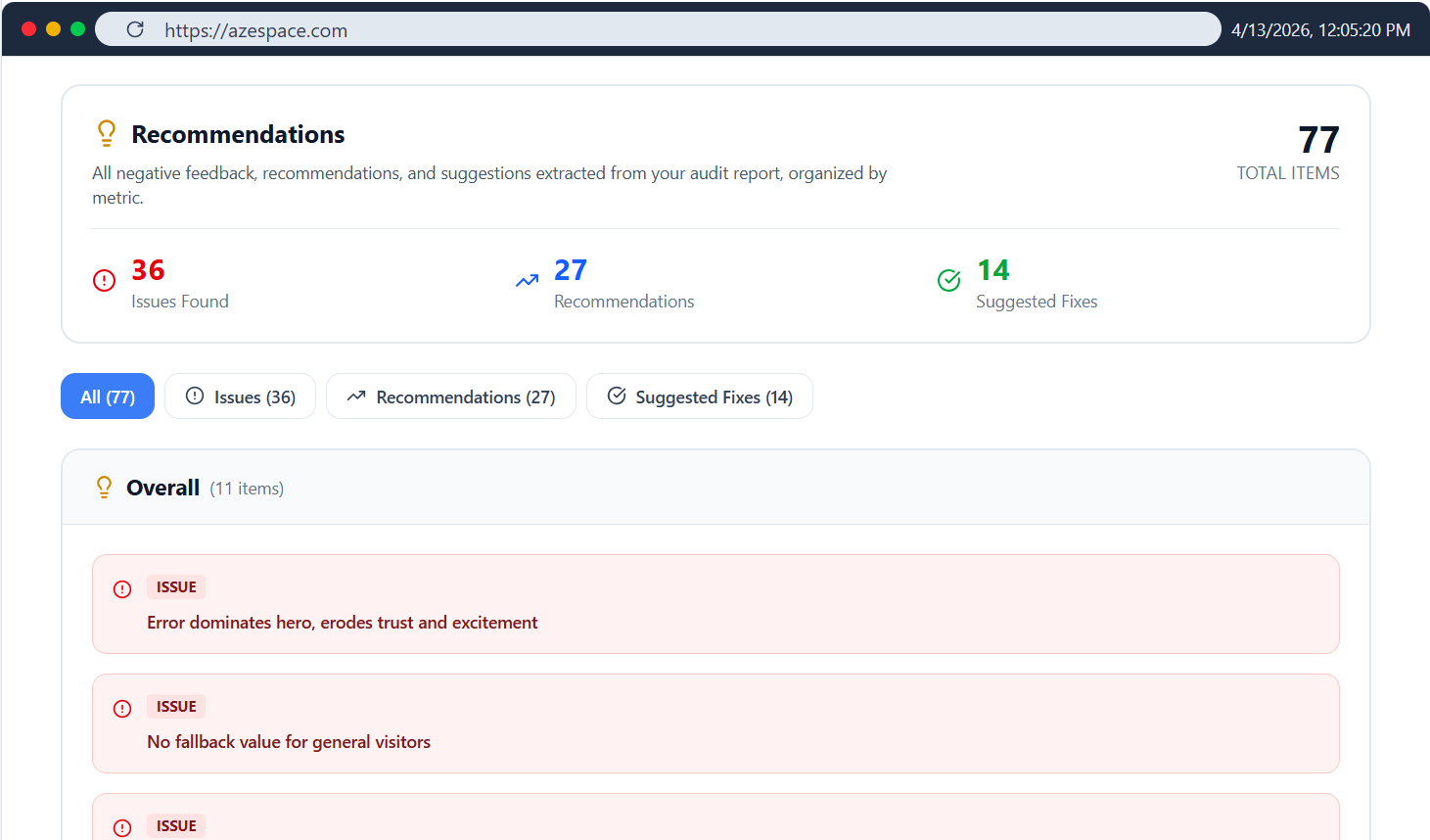 We audit your startup's website. We don't just identify problems, we give you the exact fixes to make your product obvious and convert more users.